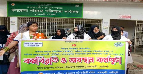 মনোহরদীতে পরিবার পরিকল্পনা কর্মীদের কর্মবিরতি ও অবস্থান কর্মসূচি অনুষ্ঠিত।